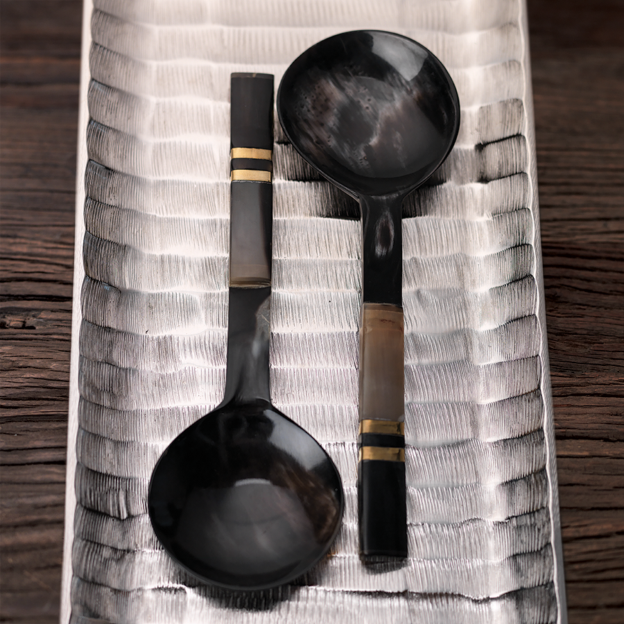 black variegated horn salad servers