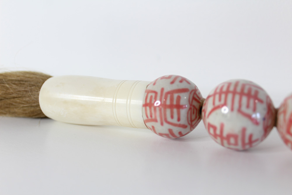 coral and white calligraphy brush
