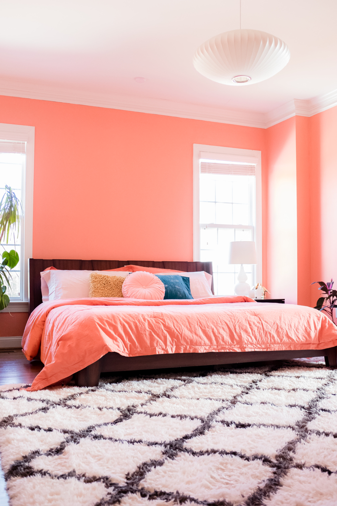 I love how my IG friend, Stacey of Design Addict Mom, updated her bedroom (below) with Pantone’s color of the year: ‘living coral’. It’s a beautiful color that is bold and pretty, while also being soft. If you wanna try this color, coral also looks really good with blue and/or red.