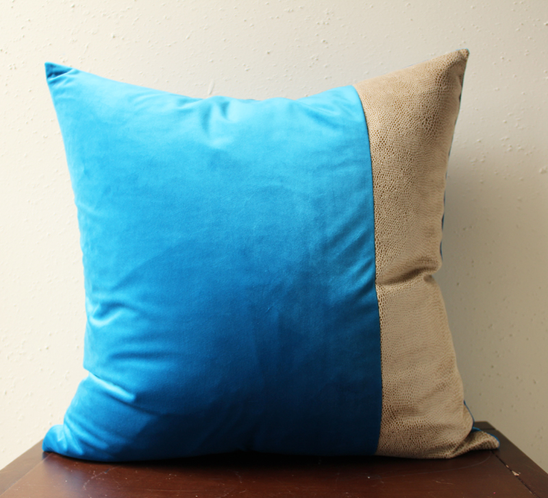 azure blue velvet pillow with snakeskin detail