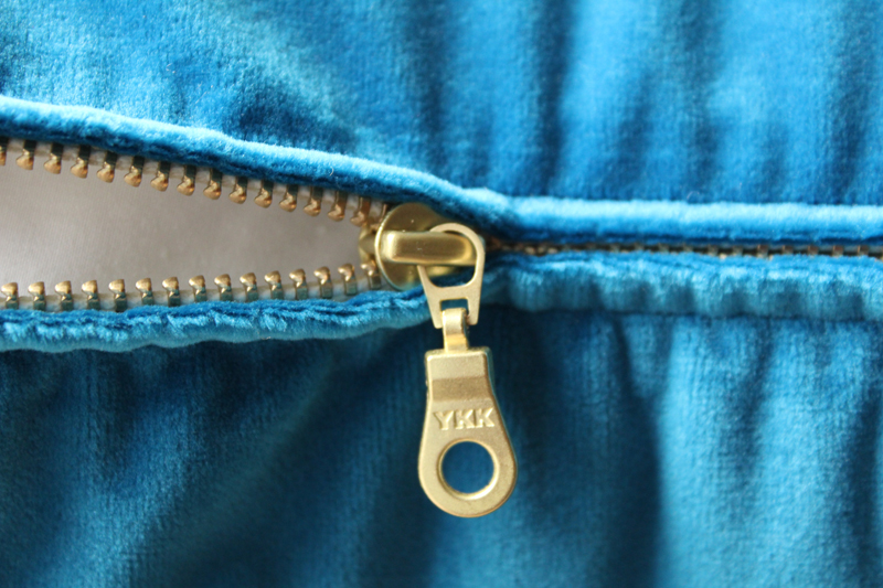 azure blue velvet pillow with snakeskin detail