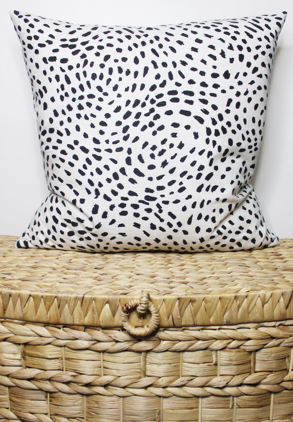 black and white dotted pillow | black and white dalmatian print | black and white bedding | black and white pillow