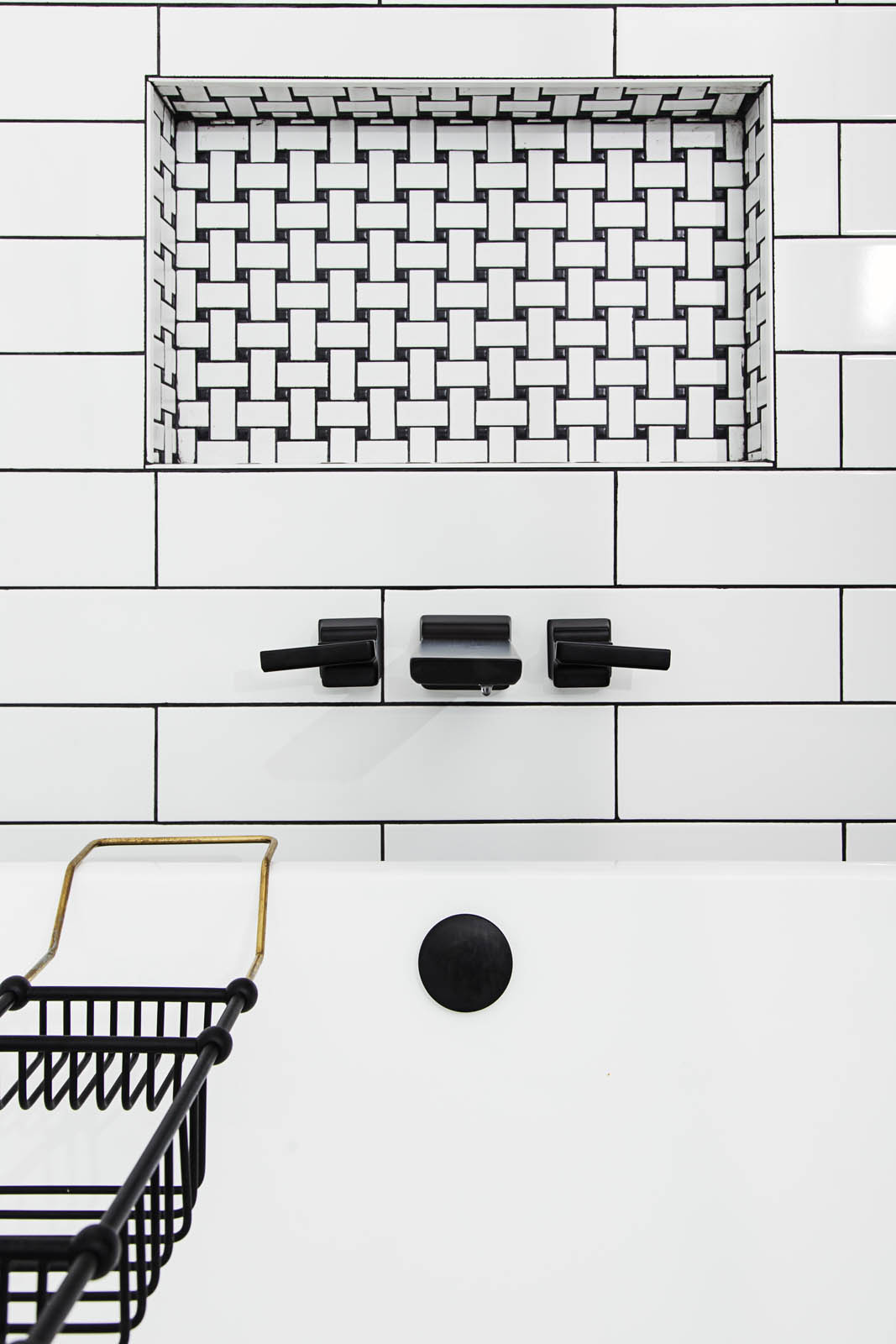 black and white primary bathroom by Whitney Jones of Whitney J Decor, interior designer in New Orleans | Black interior designer in New Orleans | eclectic interior designer in New Orleans | black interior design firm