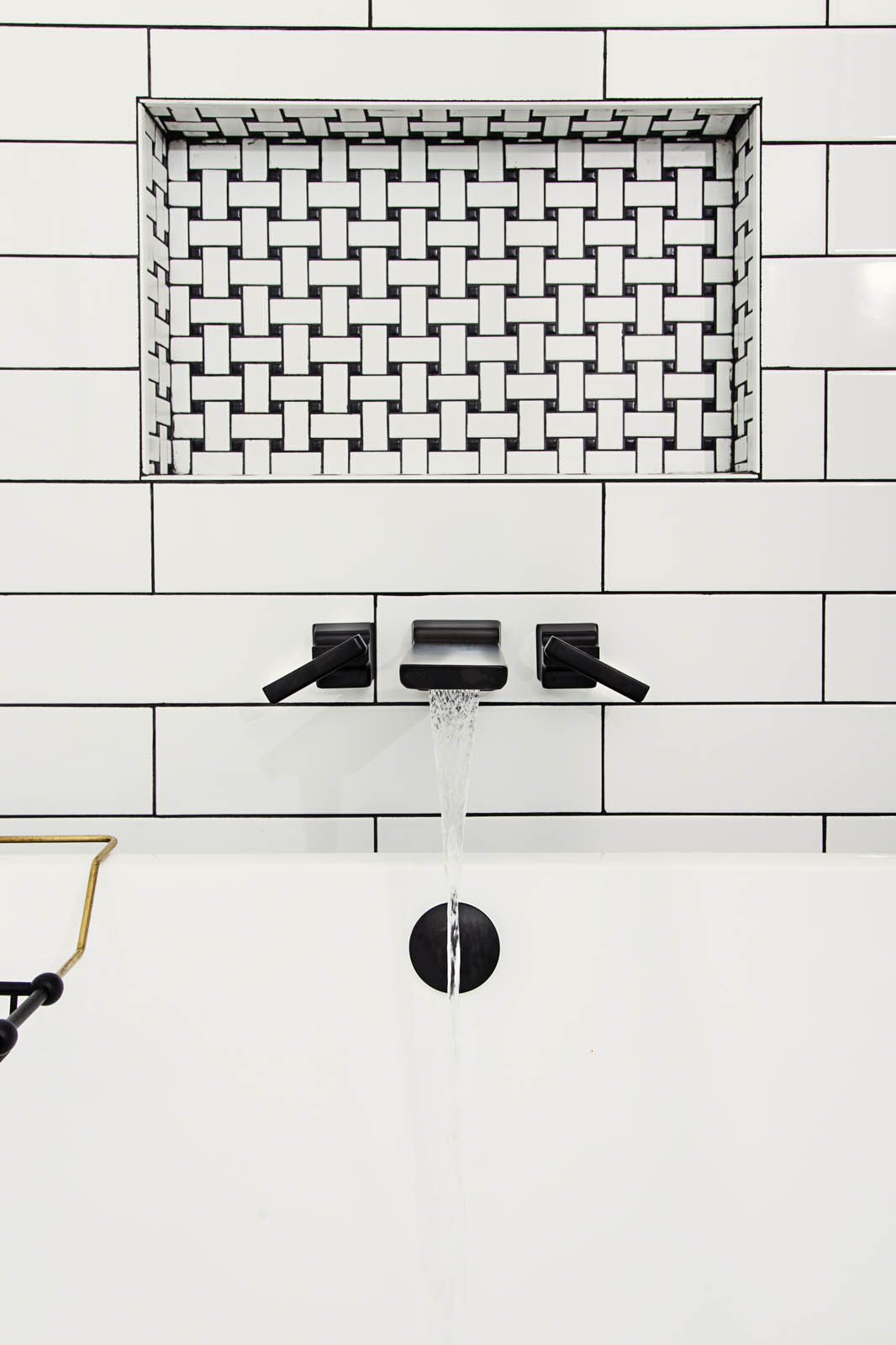 black and white primary bathroom by Whitney Jones of Whitney J Decor, interior designer in New Orleans | Black interior designer in New Orleans | eclectic interior designer in New Orleans | black interior design firm
