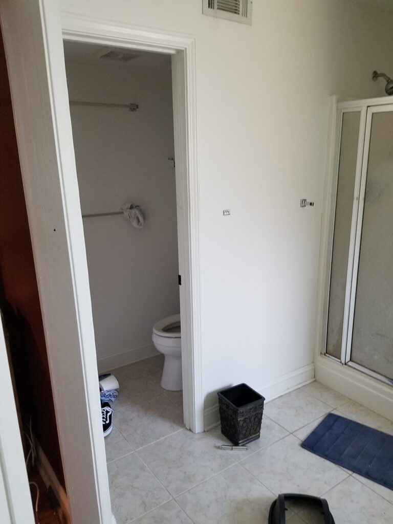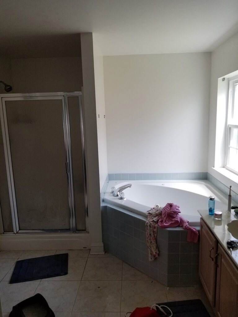My client had already knew this would be a full gut job and I was excited to be able to have a clean slate to work with. The entry door into the bathroom was across from the shower, and with the window where it is… we were limited in the layout of the bathroom.