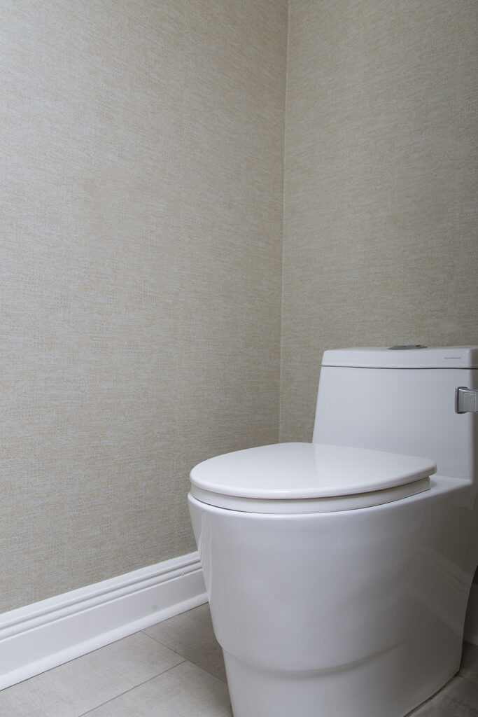 Inside the water closet (where the toilet sits), I had a beautiful, yet subtle, wallpaper installed that really elevated that small space. I also used my favorite toilet, which is one-piece, dual-flush, elongated, and chair height. It’s a beautiful toilet that is SUPER easy to clean, since there’s none of the nooks and crannies that traditional toilets have. It’s a work of art, seriously. You can get it here.