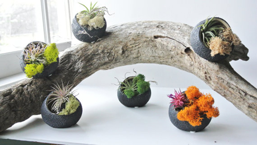 I love how the green moss compliments yellow, white, and black. Terrariums are a great way to add a small pop of color.