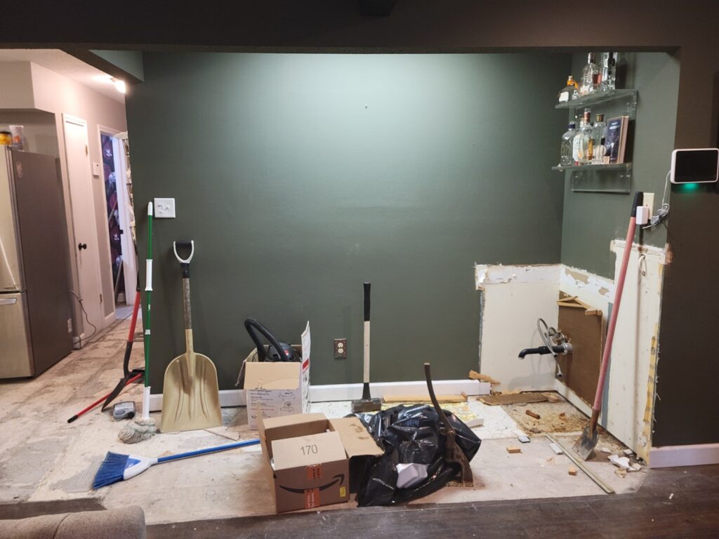 Last week I showed you what the space looked like with bar pretty much gone. Click here to read all about it.