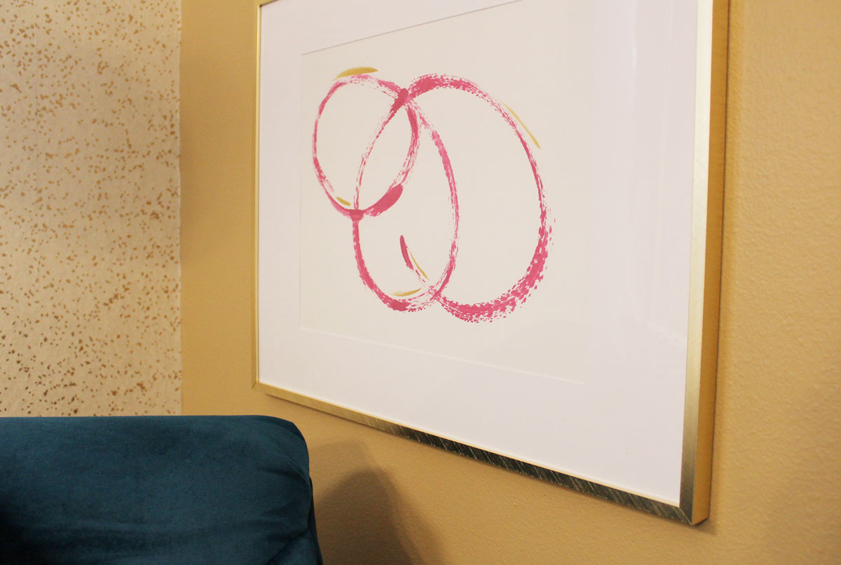 pink and blue transitional bedroom | blue bedroom | pink bedroom | transitional bedroom | glam bedroom | pink diy art | how to transform a master bedroom | white campaign dresser | blue chaise | nate berkus bedding